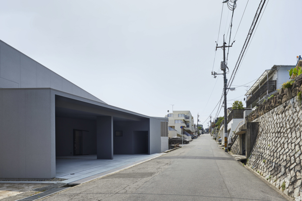 広島市の中心部に建つ住宅。敷地の南西は広島市の街並みが望むことができ、特に夕景のアーバンスケープが美しい。敷地の北東は尾長山の山並みを望むことができる。この街並と山並の両方を享受できる恵まれた環境に、景色の広がりと合わせて光と風を取り込んだ住宅を計画した。