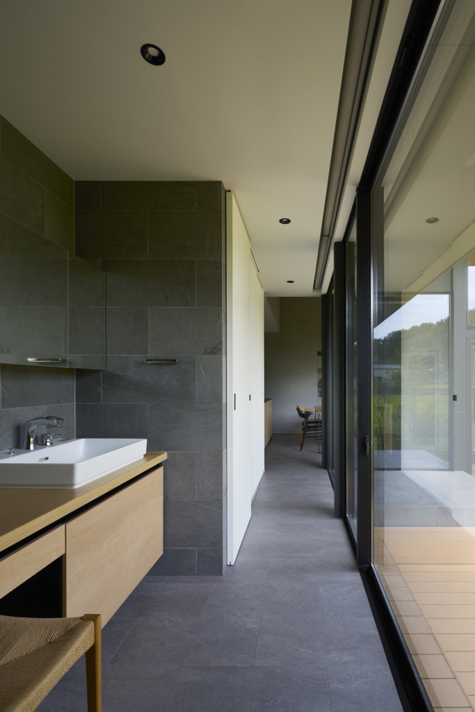 「開く」ことと「守る」こと。相反するはずのふたつの要素は、この住宅において矛盾ではなく、むしろ風景を読み解き、暮らしに寄り添うための両輪として扱われた。環境を受け入れながら、同時に静かに身を寄せられる場所──この住まいは、その間に揺らぐ余白のような存在でありたいと願っている。