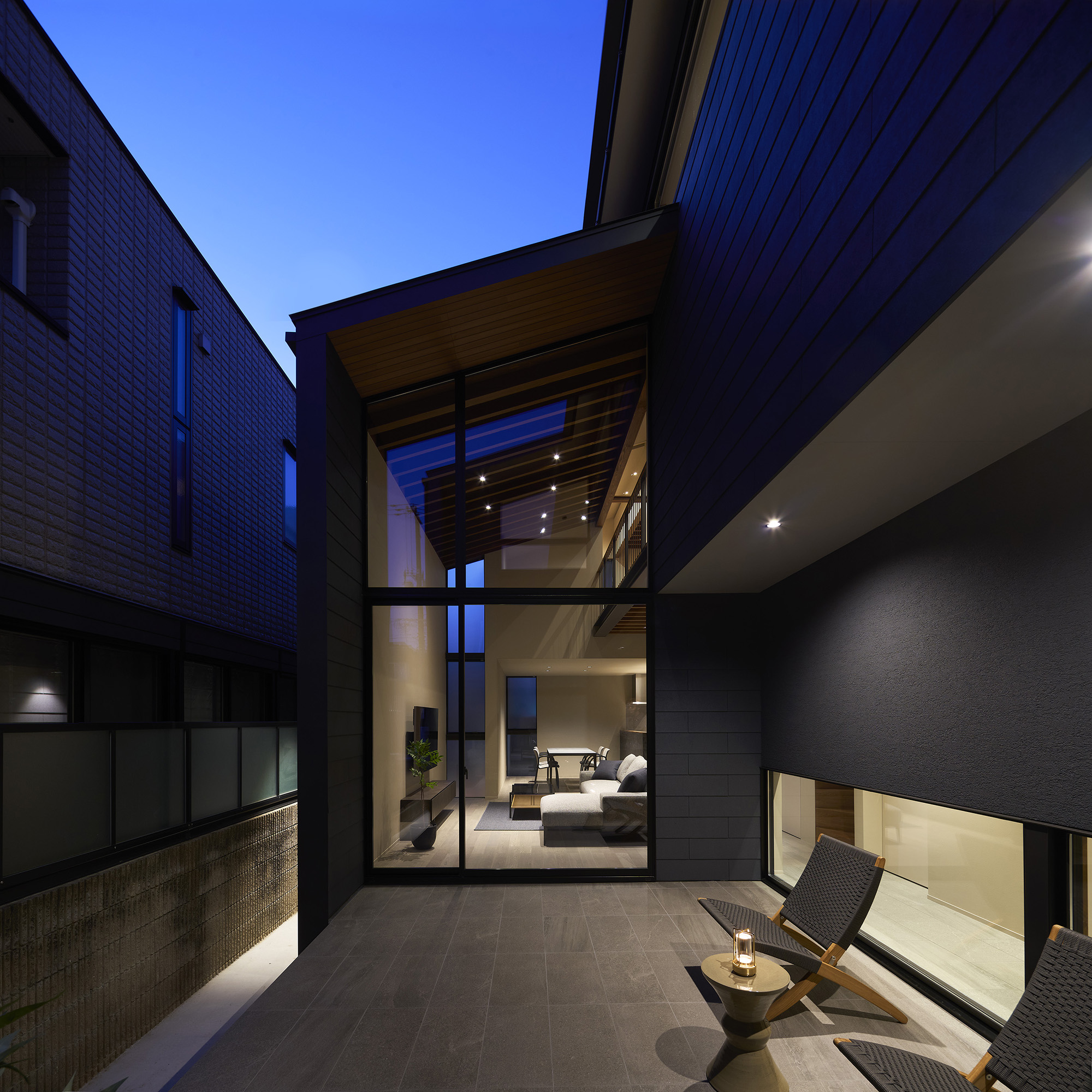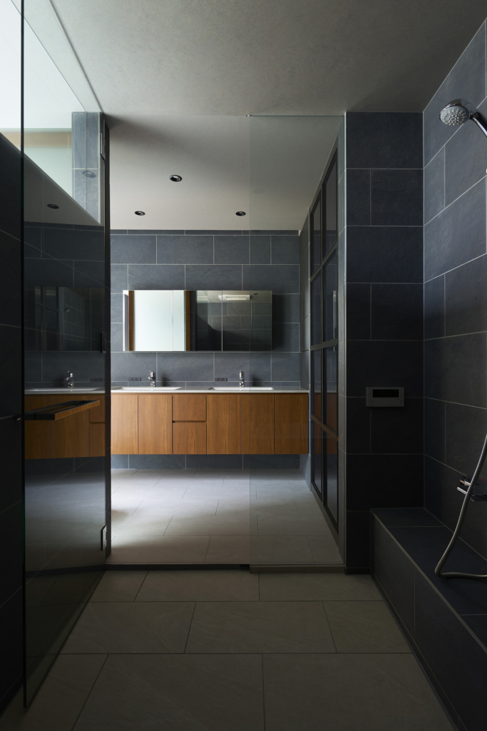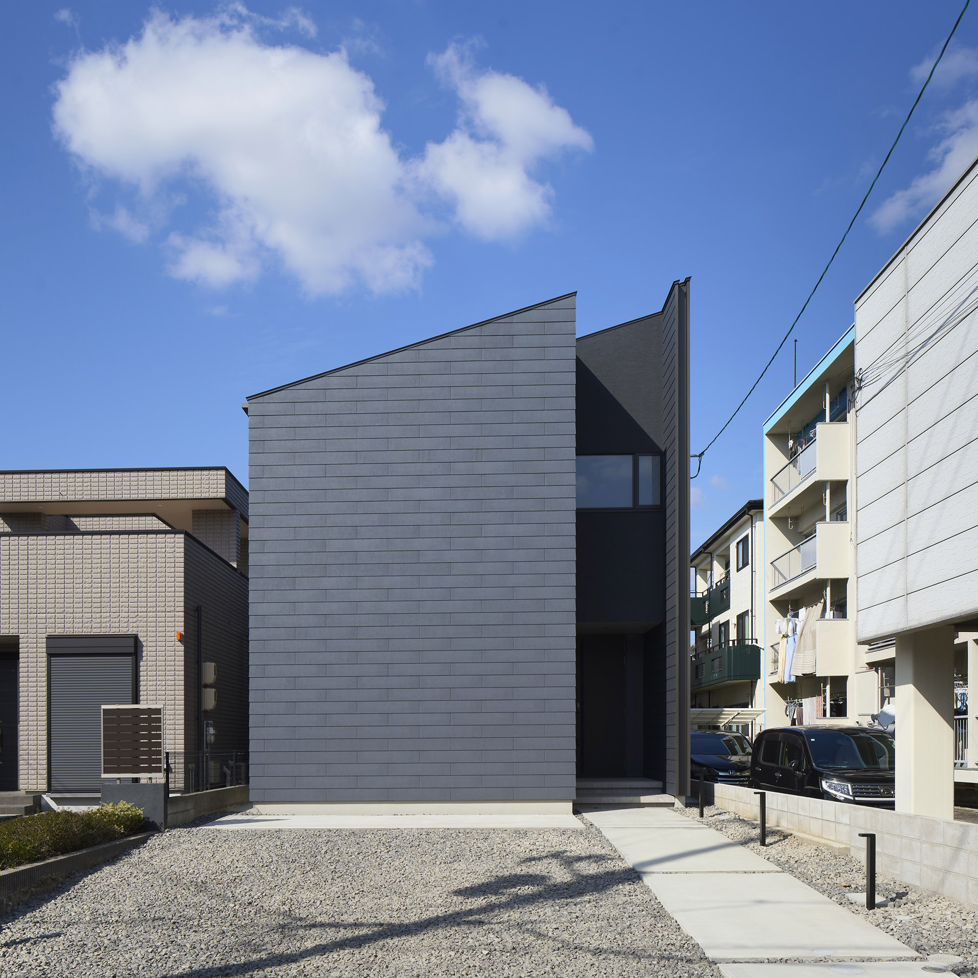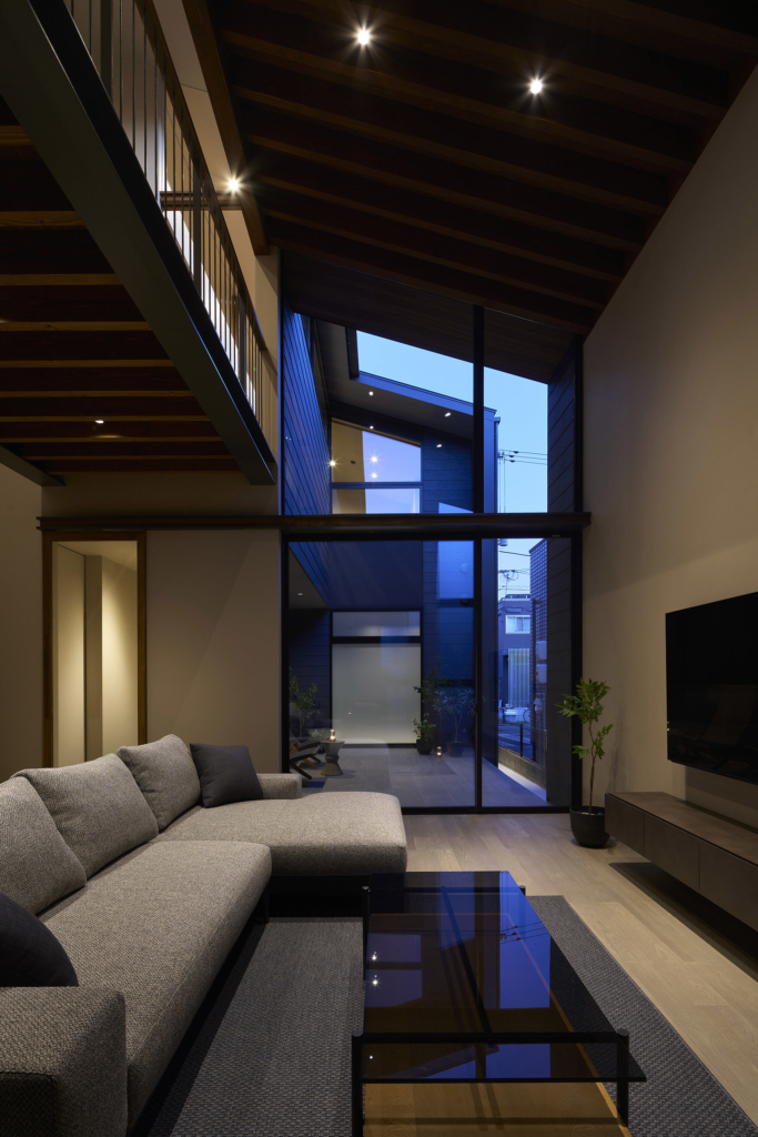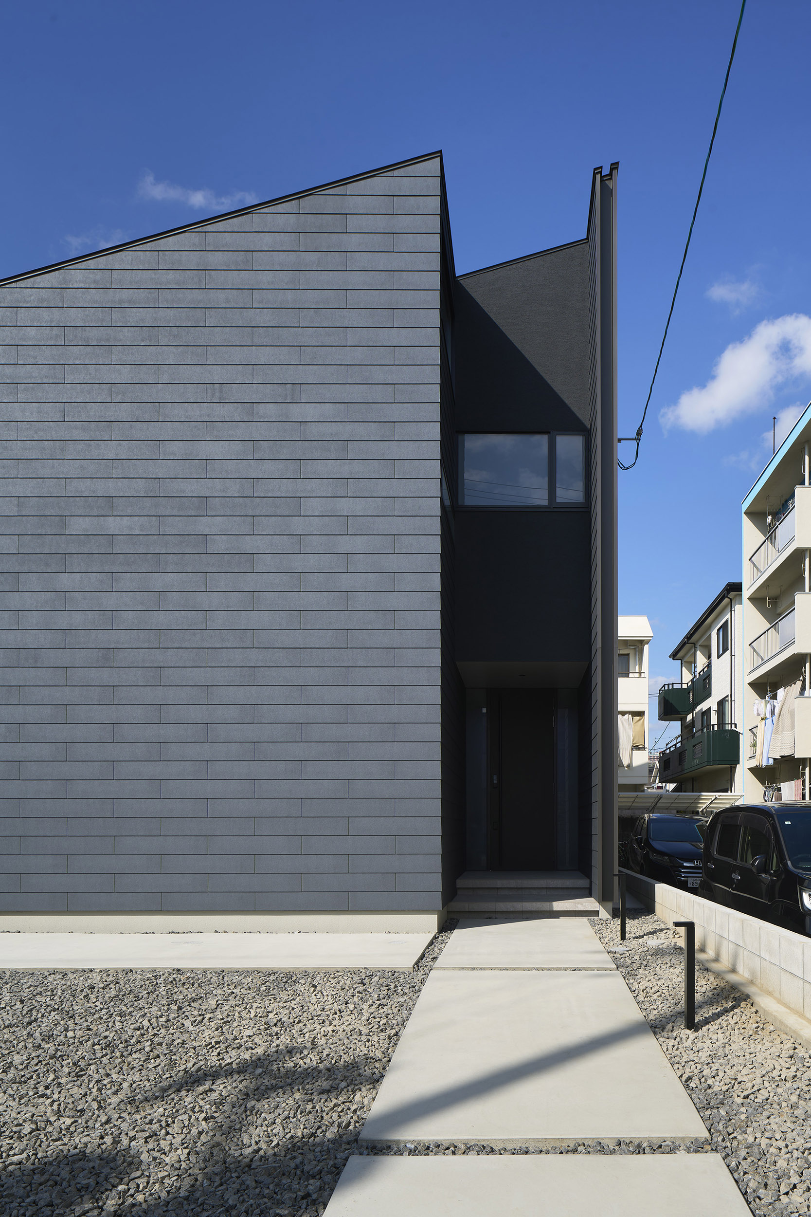 都市の住宅は、ともすれば外部に対して閉じてしまいがちである。しかしこの住まいでは、建築をずらし、重ね、隙間をつくることで、都市の中にいながらも、光や風、そして時間の存在を静かに感じられる場を目指している。