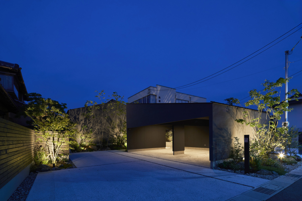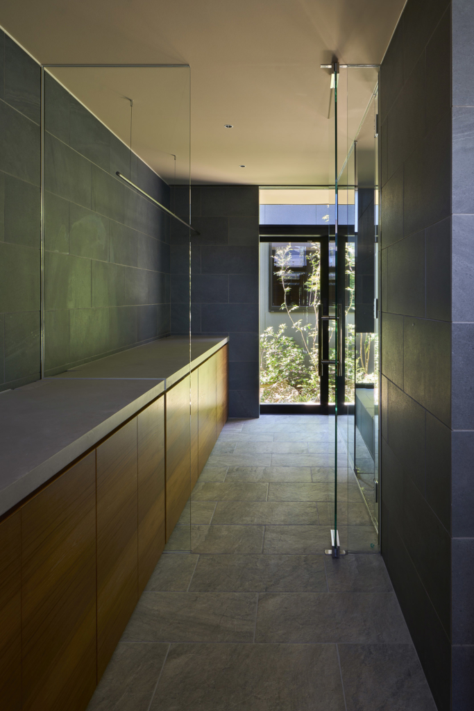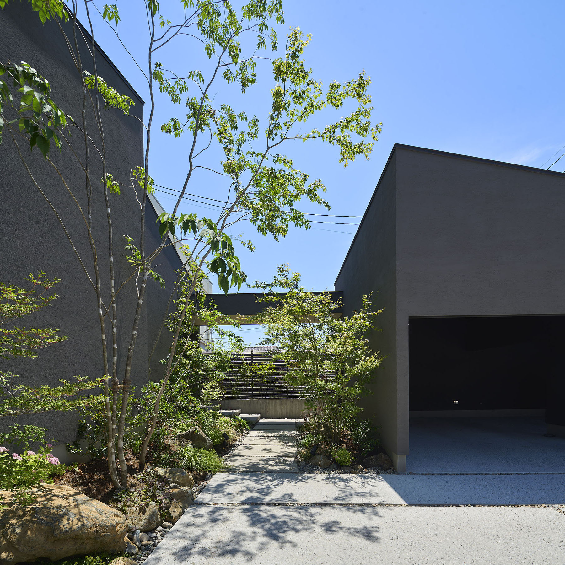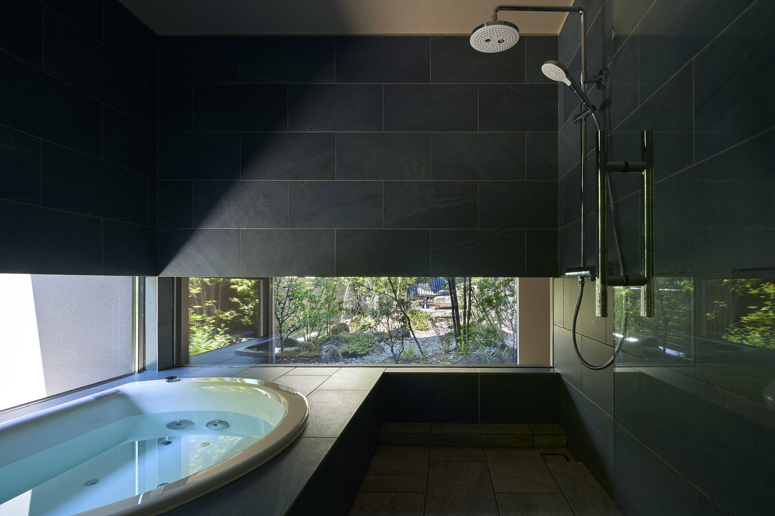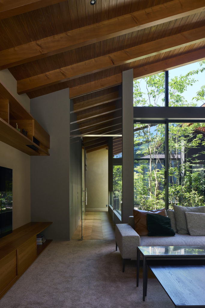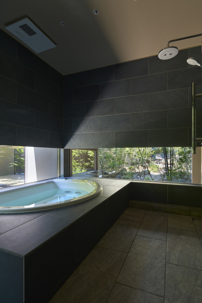 7つの庭はそれぞれ近接する室内空間と関係づけられ、場所ごとに異なる役割を果たす。面積の広い中庭と南庭にはアウターダイニングとアウターリビングを配置し、内部、中間、外部というグラデーショナルな連続性が空間全体に奥行きをつくりだしている。またルーバーによって周囲からの視線や直射日光をやわらかく遮ることで快適な外部環境を実現している。