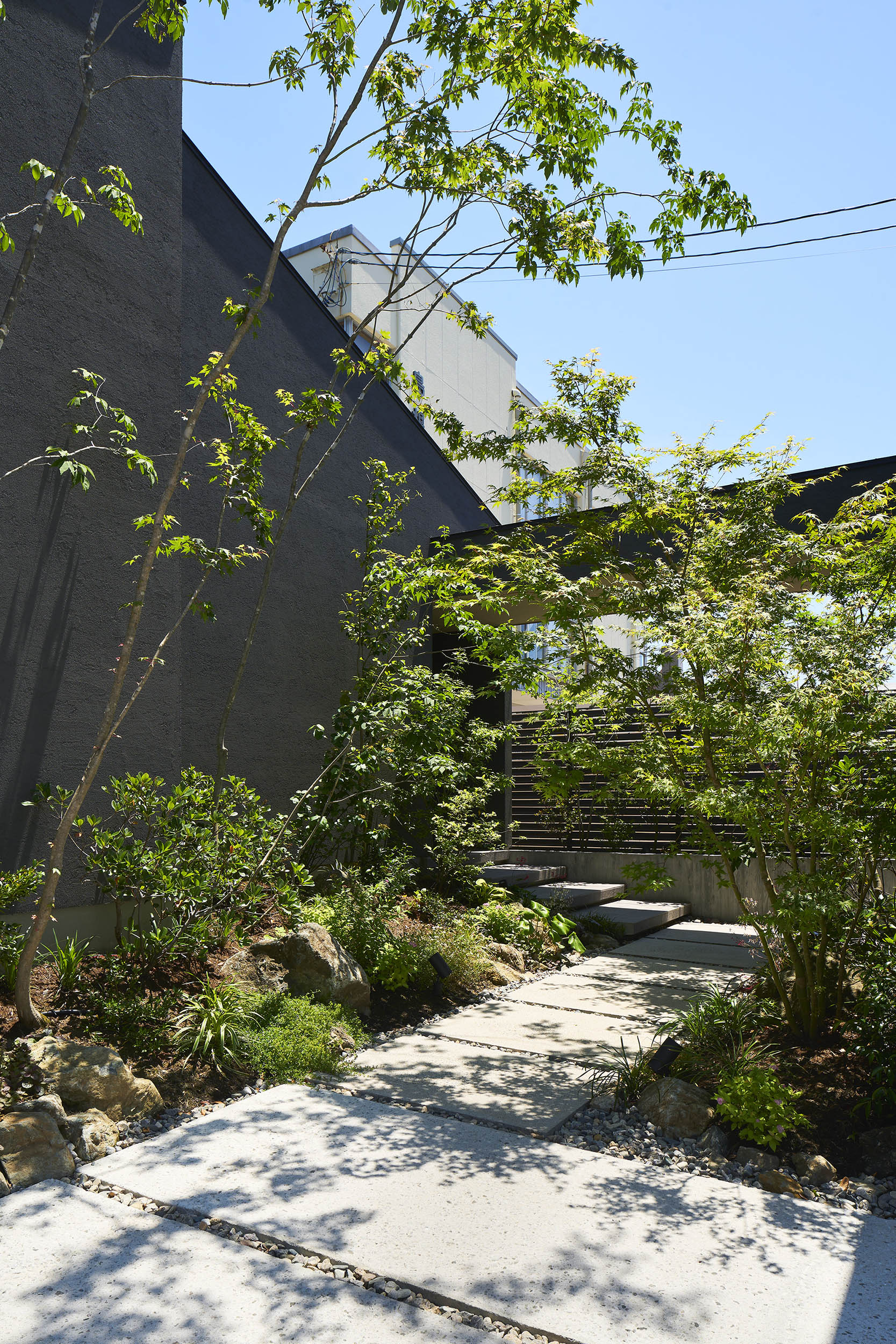 北庭と角庭、 東庭は室内側に光を導き、視覚的に楽しむ庭とし、玄関に近い路地庭と西庭は豊かな街並みをつくることに貢献している。それぞれの庭には季節ごとにさまざまな草花が咲き、四季折々の彩りが楽しめる。これらの庭の景色は、すべての居室から垣間見ることができ、日々の暮らしの中に自然の変化を取り込む装置となっている。