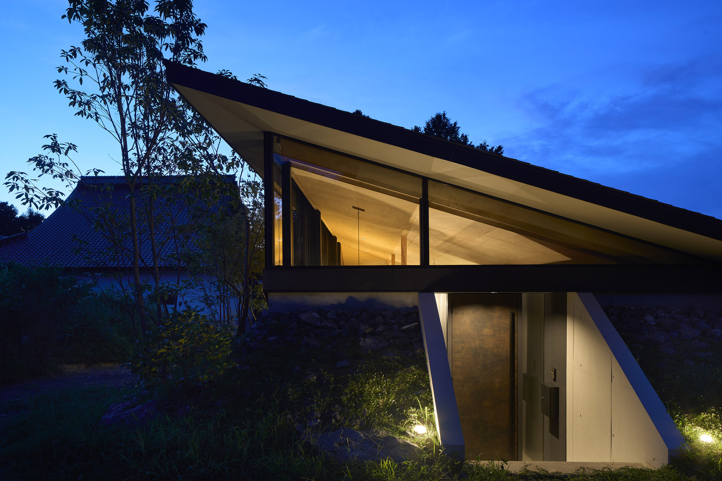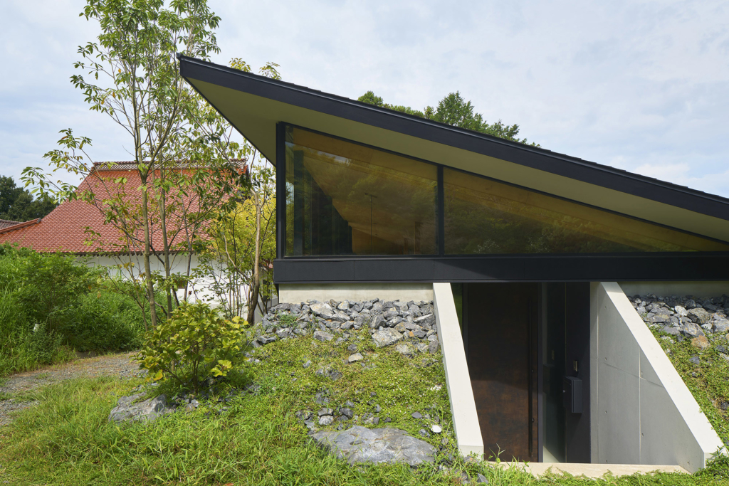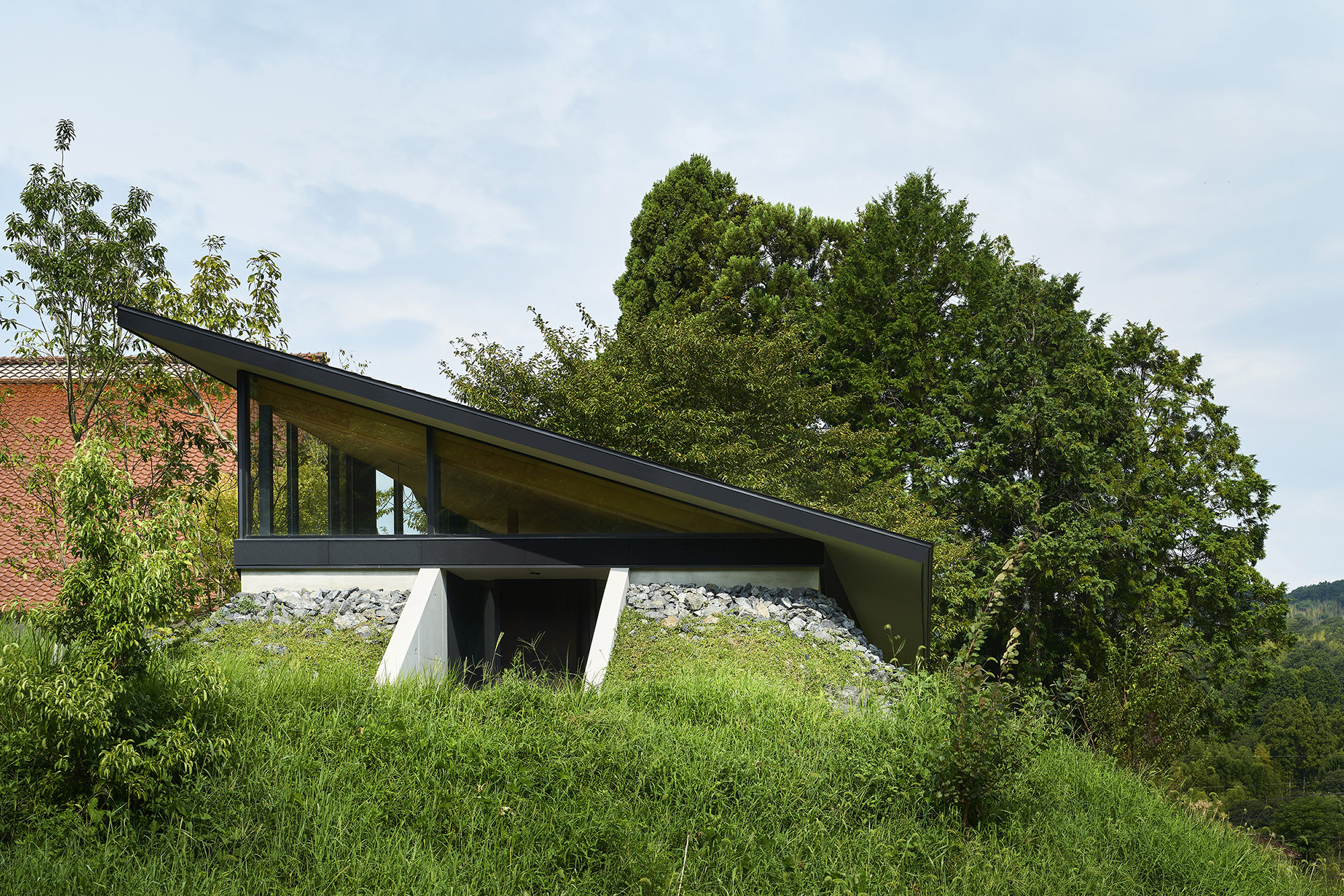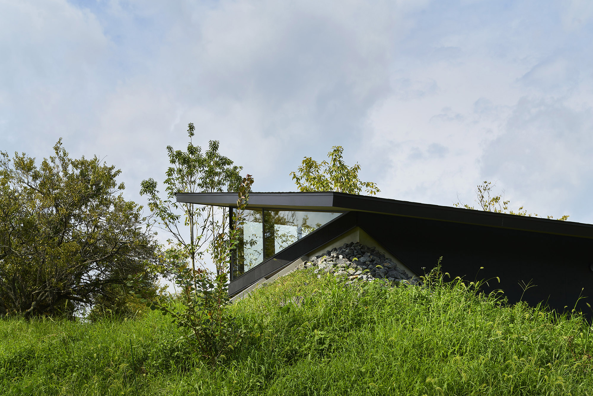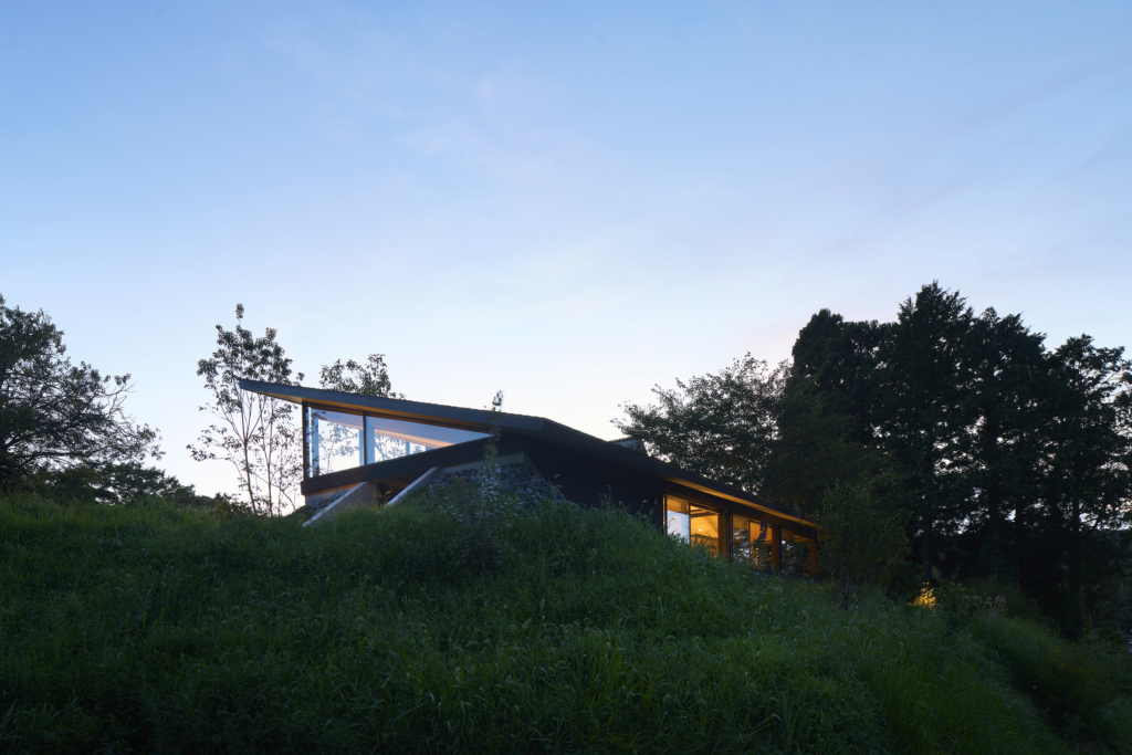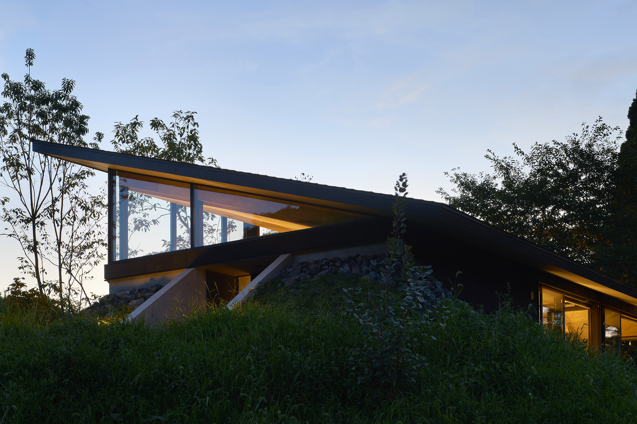 時間の経過とともに丘の植生が成長し、建物の足元は緑に包まれていく。やがて建築は地形に溶け込むような佇まいとなり、まるで丘に大きな屋根をそっと掛けたような風景を形成するだろう。